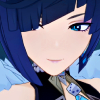 her brow slowly furrows as she focuses on the figure on the screen, as if trying to parse the face, the person, eyes whirring softly as they focus properly. there's no visible reaction to the violence that bursts across the recording in red, just more silence. observing. ]