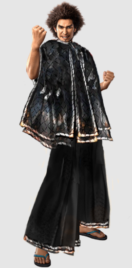 [ hi, you're pointing a gun at ichiban, who in addition to wearing a new outfit himself is covered in what seems to be rotten applesauce. his normally blown-out hair is... well, still mostly blown-out, but some parts of it are pressed flat against his head thanks to blood and guts and whatever else was thrown at him, look, he's been through it.
